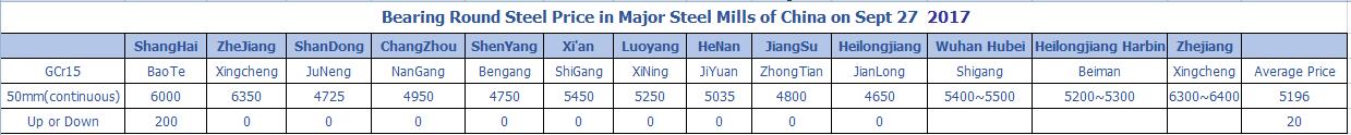 Sept 27 2017 Bearing Round Steel Price in Major Steel Mills of China