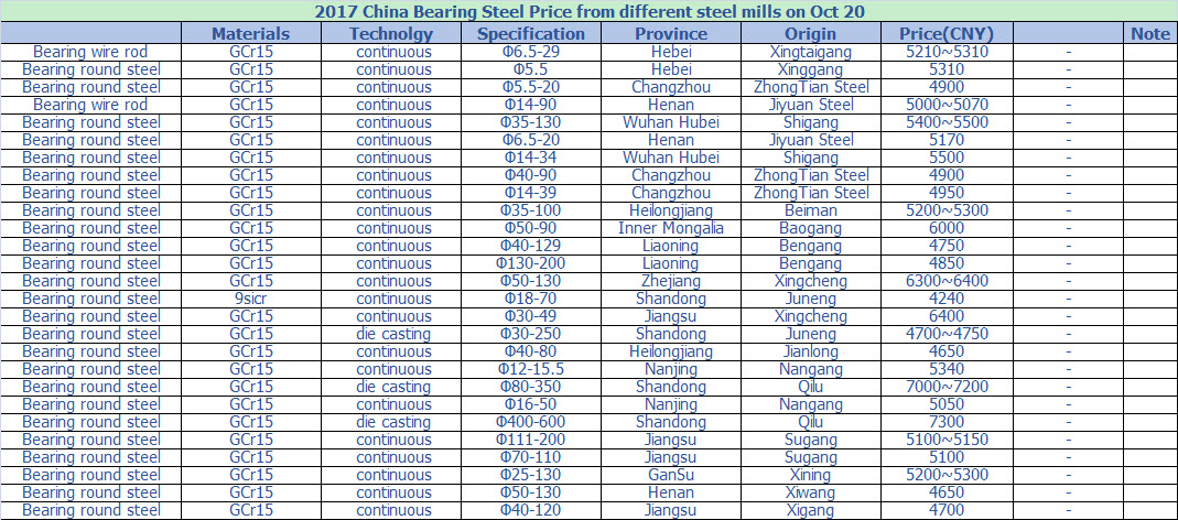2017 China Bearing Steel Price from different steel mills on Oct 20