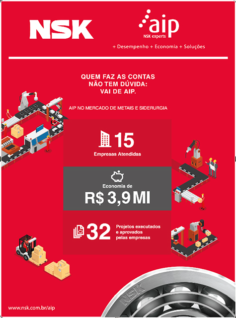 Since its implementation in 2012, AIP has already helped companies save an estimated $35.9 million BRL (about $11.5 million USD). AIP is a work methodology developed by NSK engineers that aims to optimize the use of bearings in machines and equipment. This optimization allows operation at maximum capacity with less wear, increases productivity, and considerably reduces operation and maintenance costs.