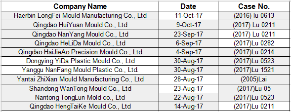Chinese discredited Mould enterprises list(part one)- Shandong Province