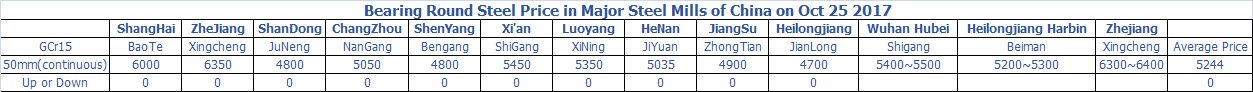 Oct 25 2017 Bearing Round Steel Price in Major Steel Mills of China