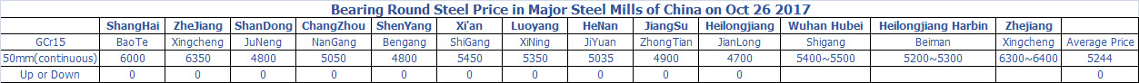 Oct 26 2017 Bearing Round Steel Price in Major Steel Mills of China