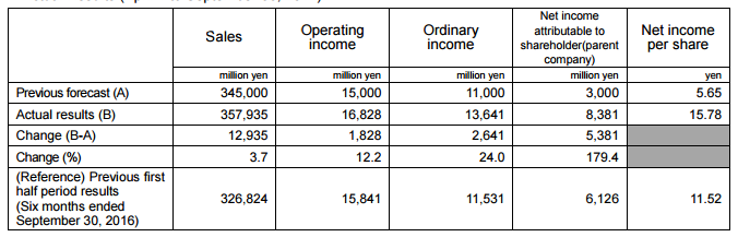 The full-year earnings forecast has been revised based on the results of this six months ended September 30,