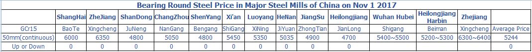 Nov 1 2017 Bearing Round Steel Price in Major Steel Mills of China