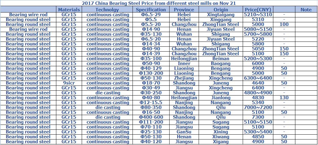 2017 China Bearing Steel Price from different steel mills on Nov 21