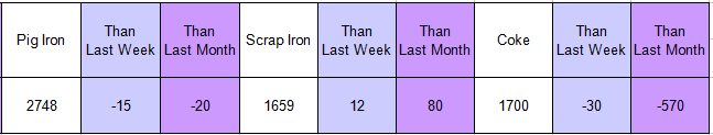 4.The index herein means weighted index , with the weight of each category made on the basis of its percentage of the total consumption of special steel over one year. The price adapted is the one of of major inventory markets by week.