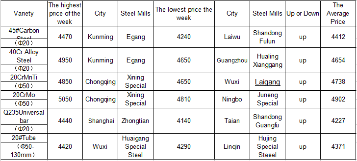 3. According to the trend of price index, the price of special steel will run up next week.