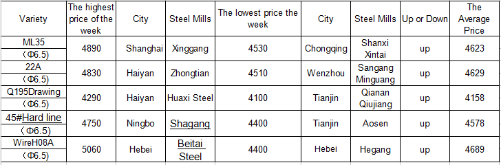 2.Price Tracking of Superior Wire Rod in a Week(unit: RMB yuan/ ton)