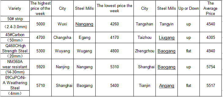 3.Price Tracking of Superior Plate and Strip in a Week(unit: RMB yuan/ ton)