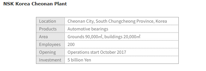 “The Cheonan plant was built with the goal of creating an environmentally friendly and clean plant. The employees each independently contributed to the project to create highly reliable manufacturing facilities that meet the needs of our customers, and that can serve as a model for NSK operations worldwide.”