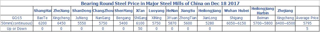 Dec 18 2017 Bearing Round Steel Price in Major Steel Mills of China