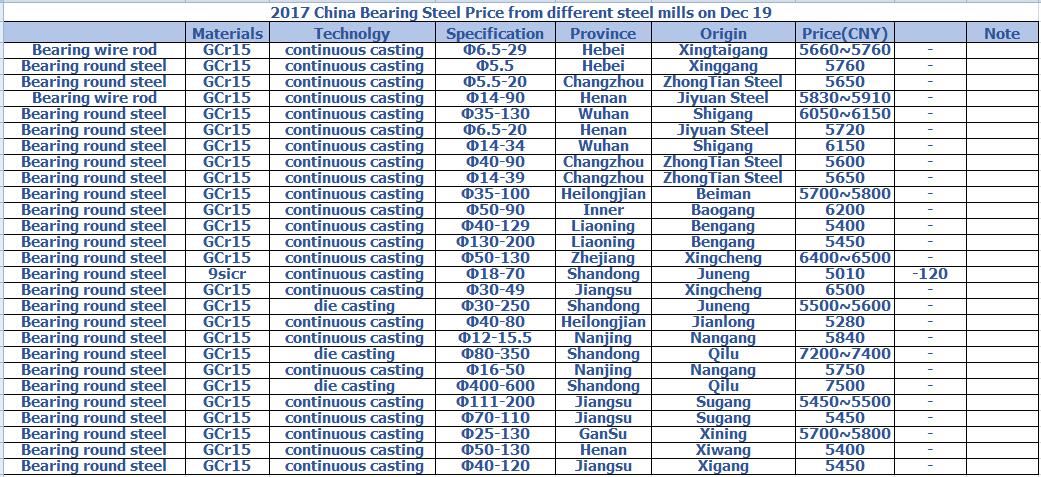 2017 China Bearing Steel Price from different steel mills on Dec 19