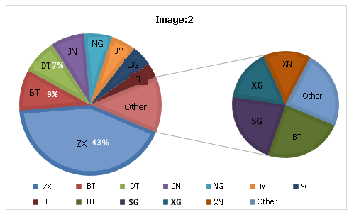 From Pic 2, the yields from ZHONGXING Bearing Steel(XINYE and XINCHENG), DONGTE and BENTE are the top three companies ahead of others, and these three contributes 59% of the yields.The total yields of bearing steel was still growing , Outputs from ZHONGXING Bearing Steel, JIGANG, Xing Bearing Steel, QINGANG, JIANLONG and ZHONGXING Bearing Steel were increased separately, but JUNENG, XINING,QILU bearing steel were decreased slightly.