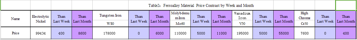 2.2 Prices of Ferroalloy (unit: RMB yuan/ton )