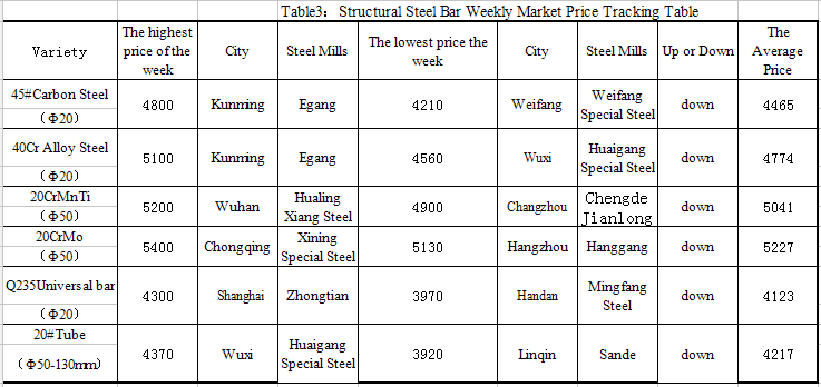 1.Price Tracking of Structural Steel Bar in a Week(unit: RMB yuan/ ton)