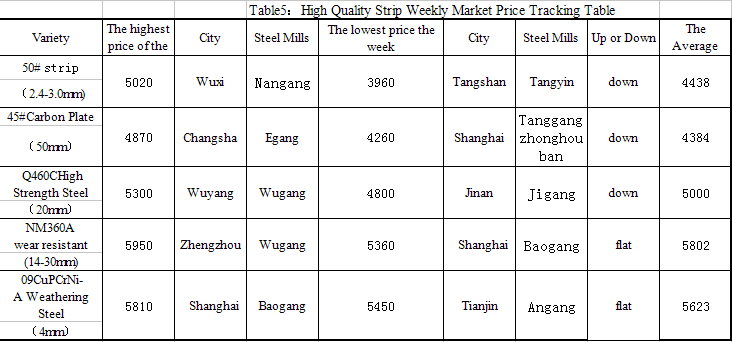 3. Price Tracking of Superior Plate and Strip in a Week(unit: RMB yuan/ ton)