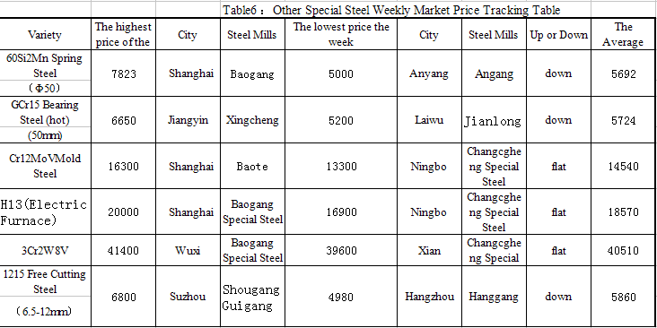 4. Price Tracking of Other Special Steel in a Week(unit: RMB yuan/ ton)