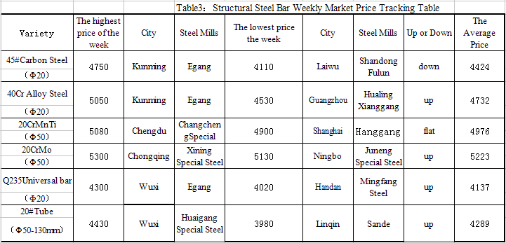 1. Price Tracking of Structural Steel Bar in a Week(unit: RMB yuan/ ton)