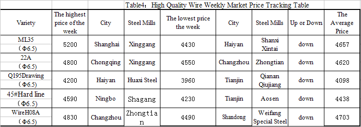 2. Price Tracking of Superior Wire Rod in a Week(unit: RMB yuan/ ton)