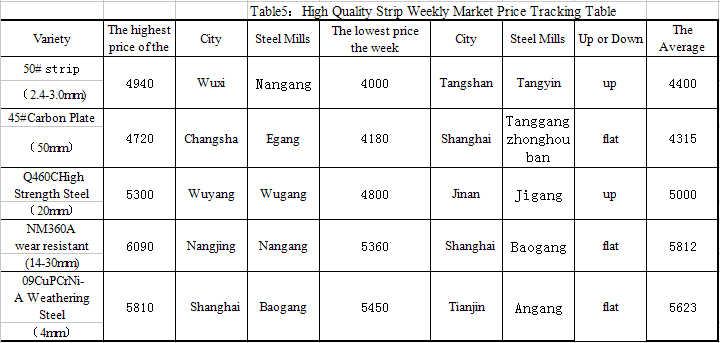 3. Price Tracking of Superior Plate and Strip in a Week(unit: RMB yuan/ ton)