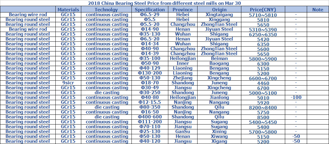 2018 China Bearing Steel Price from different steel mills on Mar 30