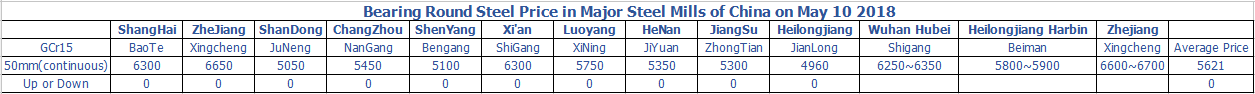 May 10 2018 Bearing Round Steel Price in Major Steel Mills of China