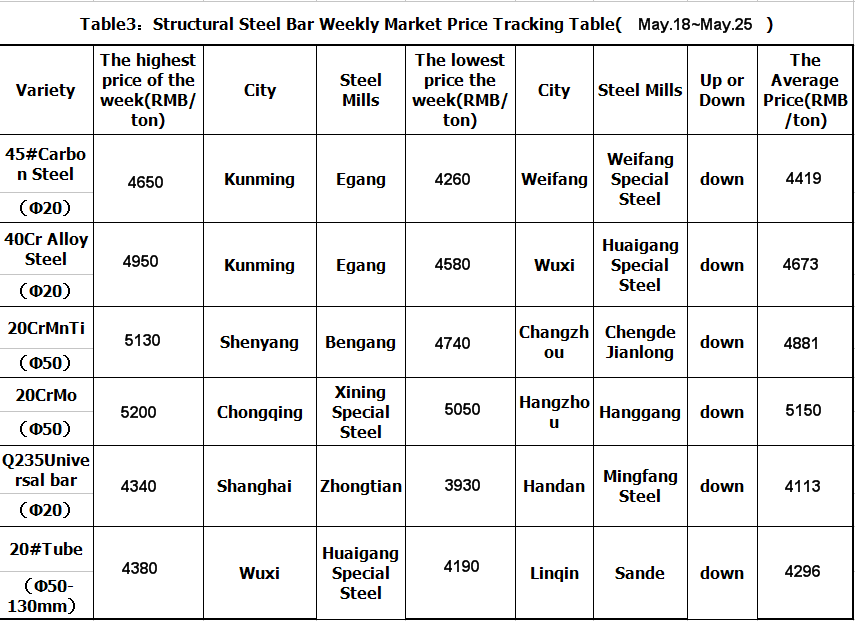 1.Price Tracking of Structural Steel Bar in a Week(unit: RMB yuan/ ton)