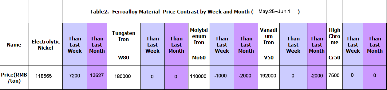 This week, among the five categories of raw materials, the prices of scrap steel decreased, domestic ore and pig iron remained flat,, imported ore and coke increased. The main tungsten iron, high chromium remained flat, ferromolybdenum and high-manganese decreased, silica and electrolytic nickel increased.