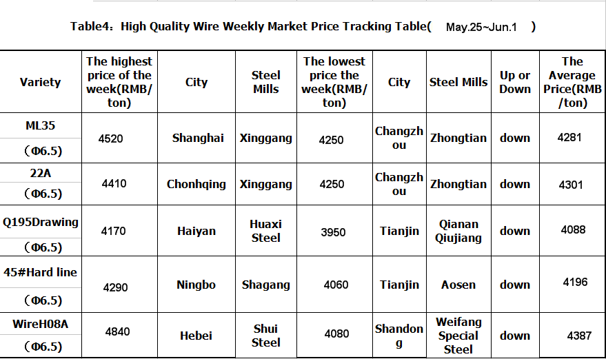 2. Price Tracking of Superior Wire Rod in a Week(unit: RMB yuan/ ton)
