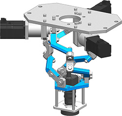 The “i-WRIST” developed by NTN uses a special link mechanism*2 that allows the associated device to be more compact and space-efficient, and move over a wider range of movement. This enables minor changes in positions (angles), which perpendicular multijoint robots and pan-tilt structures*3 perform poorly with, to be made at high-speed like human wrist. The maximum operating angle of the conventional “i-WRIST” was 45°, however the operating range has been expanded to 90°, which allows appearance inspections of complex shapes or hemispheric surfaces conducted by humans to be replaced with “i-WRIST.” Appearance inspections of 60 areas can be achieved in just 8 seconds, depending on the shape and size of the workpiece and the speed of the image processing system.