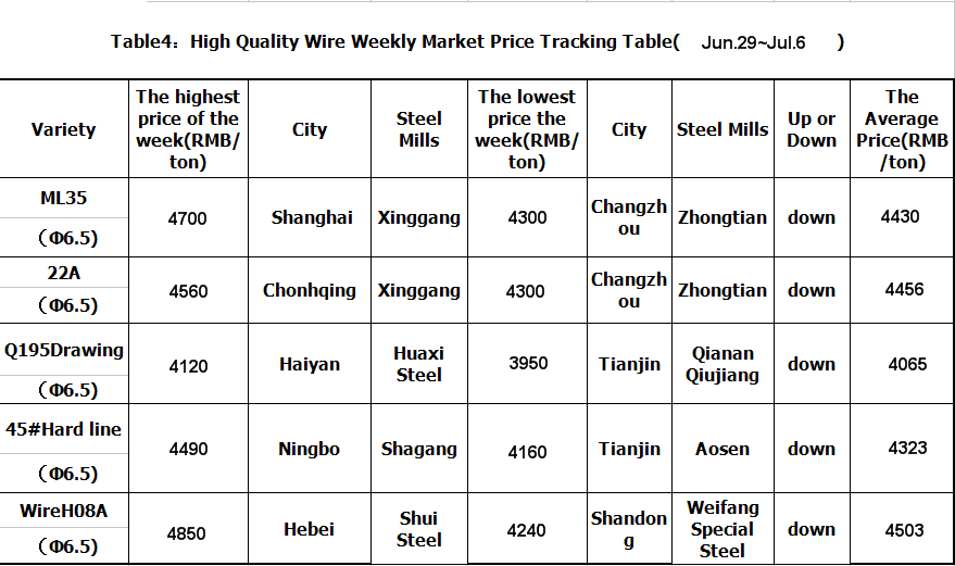 2. Price Tracking of Superior Wire Rod in a Week(unit: RMB yuan/ ton)