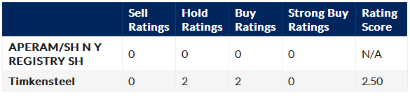 This is a breakdown of current recommendations and price targets for APERAM/SH N Y REGISTRY SH and Timkensteel, as reported by MarketBeat.