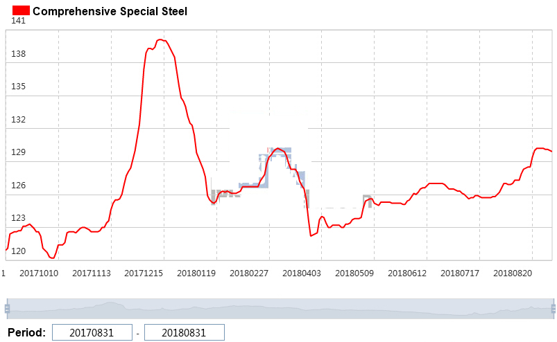 1. Up to 31st Aug,the price index of special steel reached to 129.87, 0.27% down over last week and up 2.57% over last month.