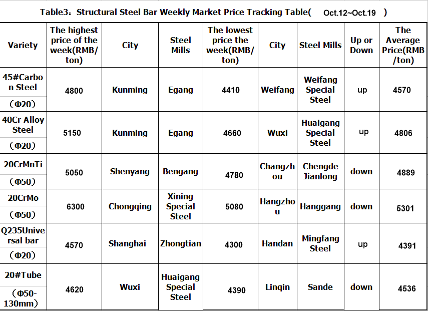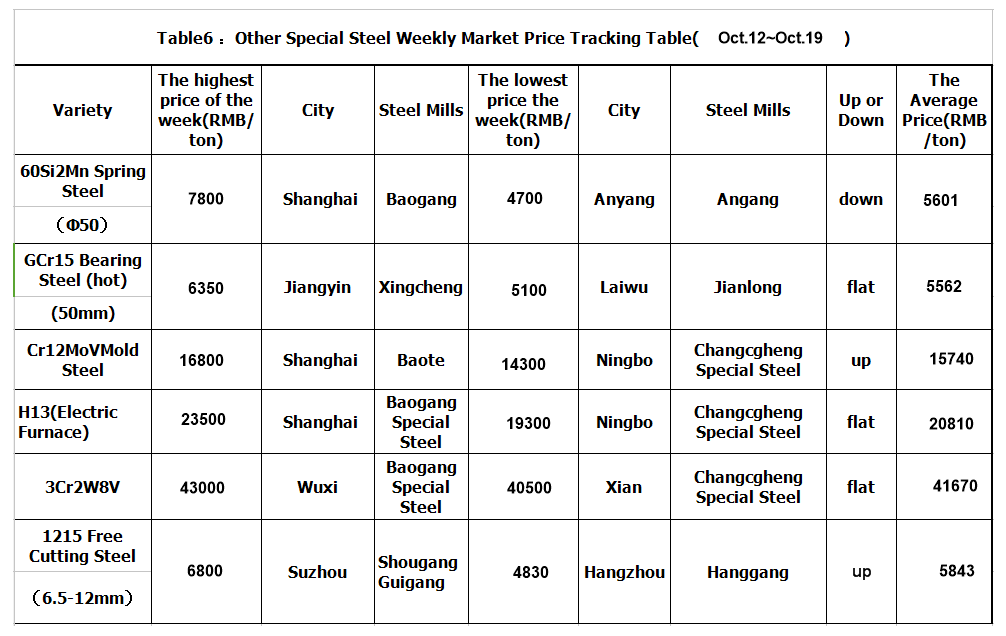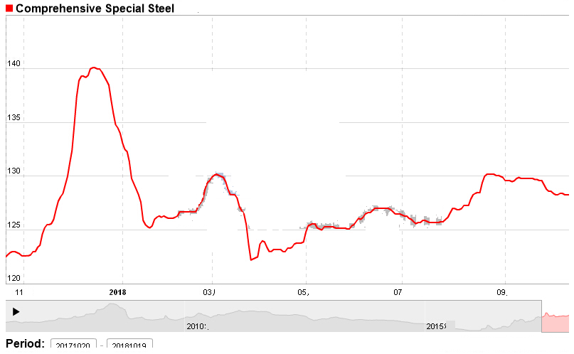 1. Up to 10th Oct,the price index of special steel reached to 128, 0.21% down over last week and down 1.25% over last month.