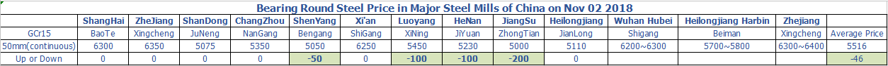 Nov 02 2018 Bearing Round Steel Price in Major Steel Mills of China