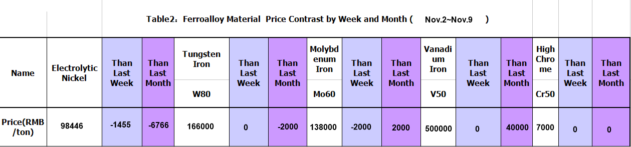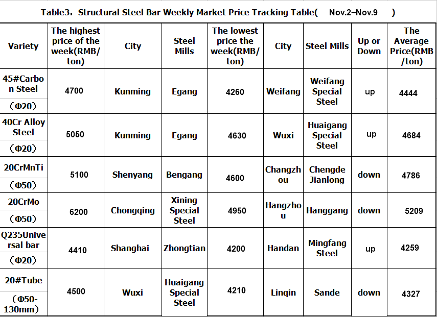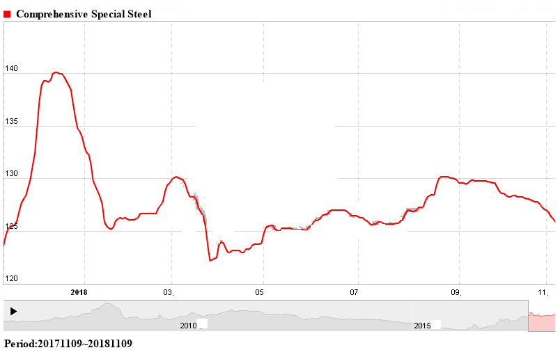 1. Up to 9th Nov,the price index of special steel reached to 126, 0.97% down over last week and down 2.14% over last month.