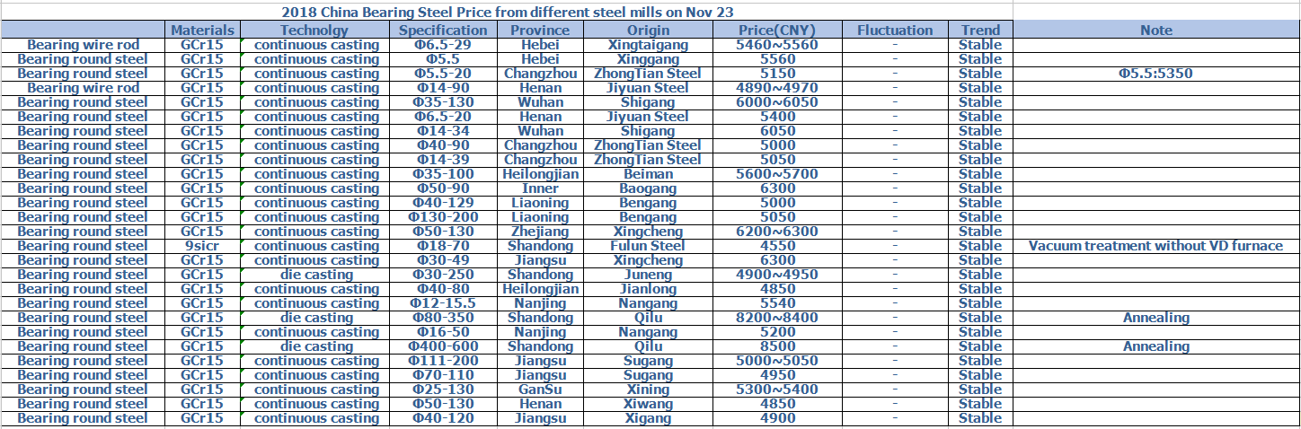 2018 China Bearing Steel Price from different steel mills on Nov 23