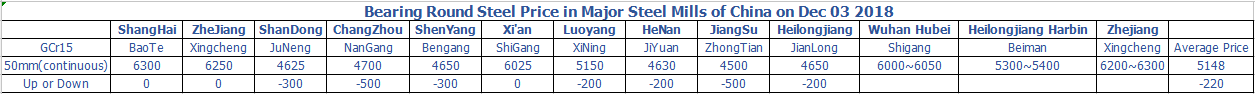 Dec 03 2018 Bearing Round Steel Price in Major Steel Mills of China