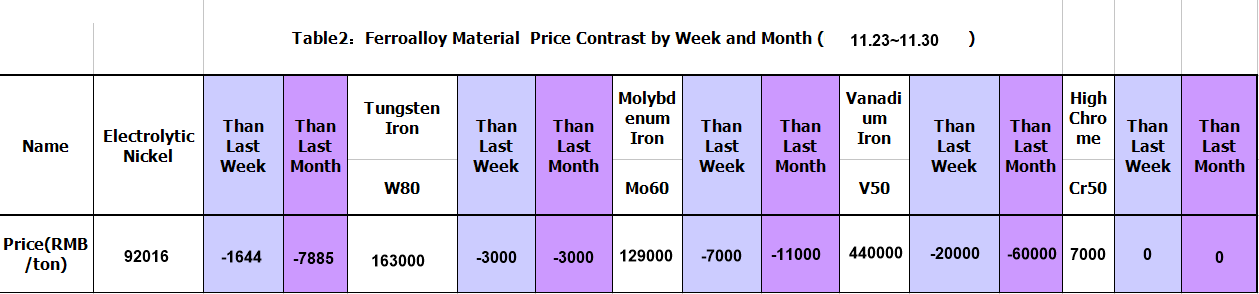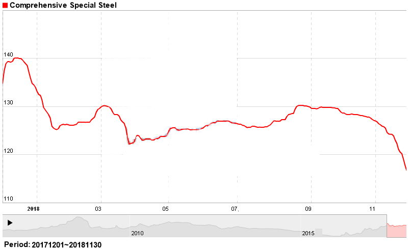 1. Up to 30th Nov,the price index of special steel reached to 116, 3.12% down over last week and down 8.52% over last month.