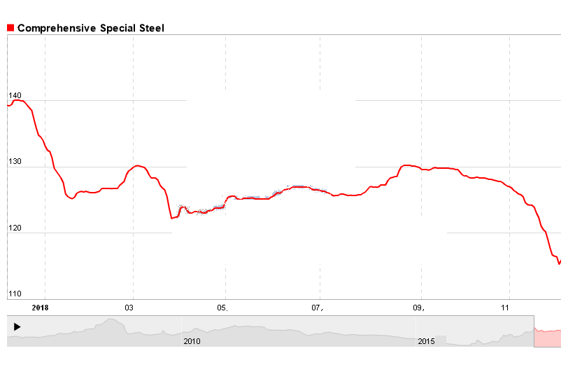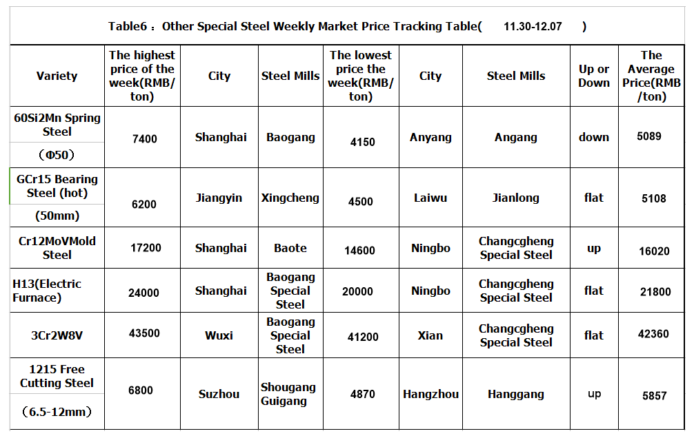 1. Up to 7th Dec,the price index of special steel reached to 116, 0.39% down over last week and down 8.02% over last month.