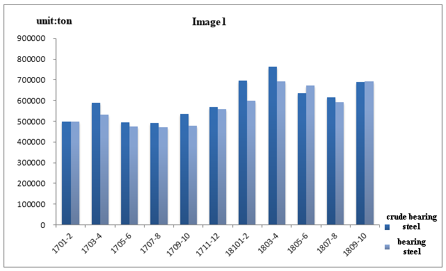 According to the statistics of the Special Steel Association, the output of crude steel for bearing steel of the main U-steel enterprises in China from January to October 340.34 million tons, an increase of 14.99% compared with the same period of last year; the main special steel output of enterprise bearing steel was 325.36million tons in China from January to October 2018, an increase of 16.52% compared with the same period of last year. See Figure 1.