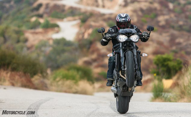 If it just started gradually happening (and not because you just crashed or dropped your bike) this sounds like a clear-cut case of steering head bearings in need of adjustment and/or replacement. The steering stem is the shaft that passes through the hole in the front of your bike’s frame that the whole fork and wheel assembly smoothly pivots upon, thanks to a pair of nice bearings – probably tapered roller ones in your Triumph. And I don’t have your bike’s shop manual in front of me, but if it’s anything like my 2000 Yamaha R1 (it is), those bearings are supposed to be adjusted every 4000 miles and repacked with grease every 25k miles. (Actually, my R1 intervals are probably shorter than yours, since the R1 uses more maintenance-intensive roller-ball bearings.)