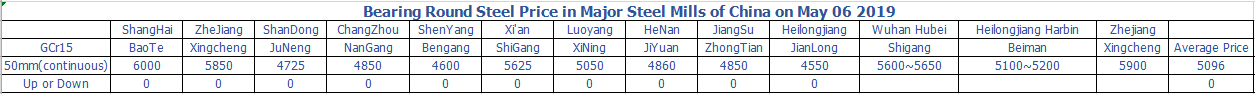 May 06 2019 Bearing Round Steel Price in Major Steel Mills of China