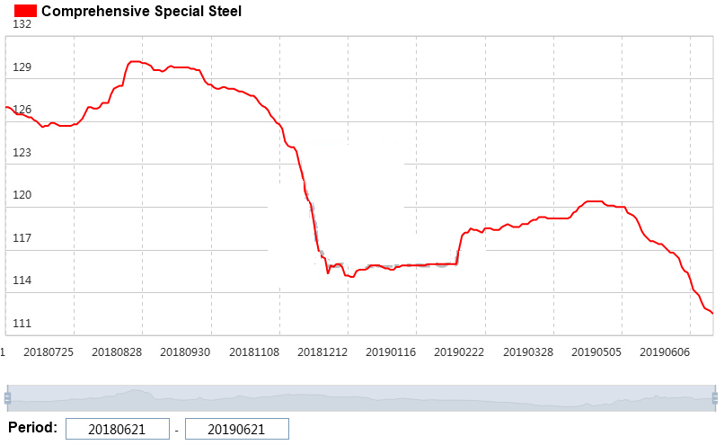 1. Up to 21st Jun,the price index of special steel reached to 112.5, 1.16% down over last week and down 4.28% over last month.