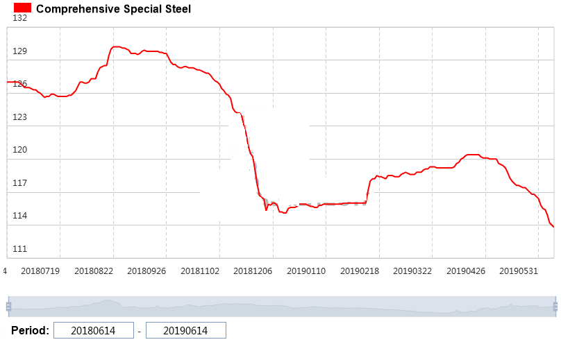 1. Up to 14th Jun,the price index of special steel reached to 113.8, 0.98% down over last week and down 3.8% over last month.