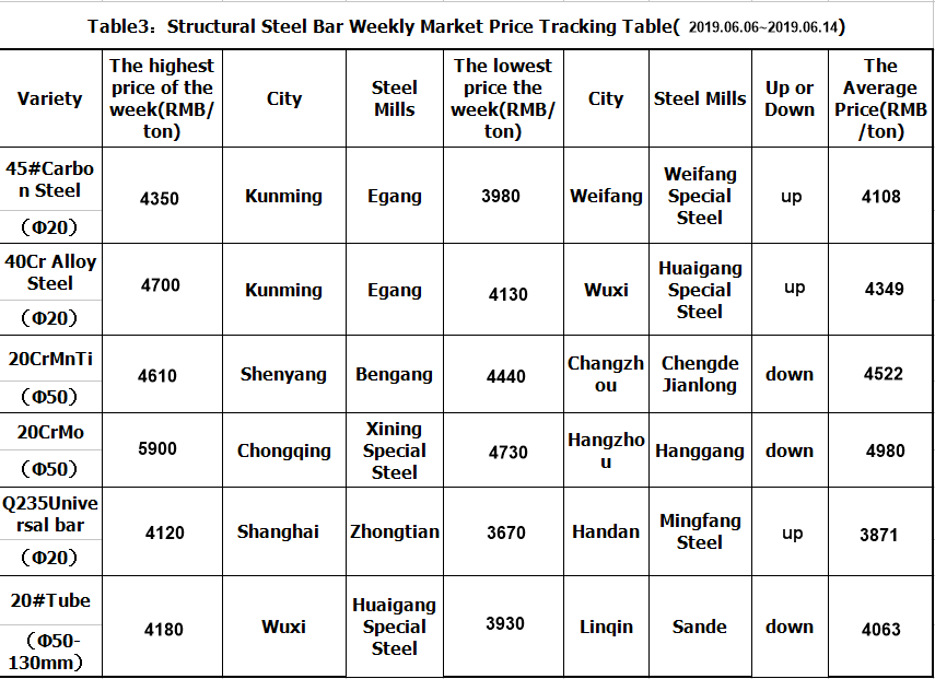 Weekly summary:2019 China Bearing Steel market trend in second week of June down 0.98%