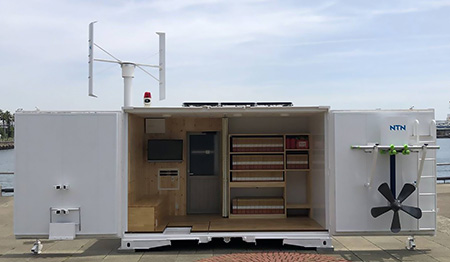 NTN Corporation (hereafter, NTN) has developed the “N3 N-CUBE,” a next-generation Container Type Transportable Independent Power Supply that can generate and supply electricity from three types of natural energy (wind, water, and solar light) in a short time by mounting power generators and storage batteries in a container. In the event of disasters, it is possible to deliver the product by multiple means (trucks, cargo ships, helicopters, etc.) to disaster areas where it has become difficult to supply electric power, and to install it quickly with a small number of people.