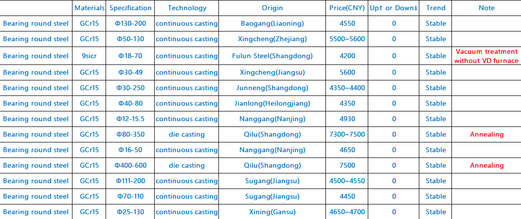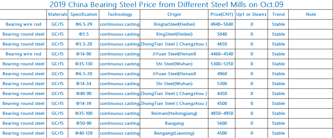 2019 China Bearing Steel Price from different steel mills on Oct 09