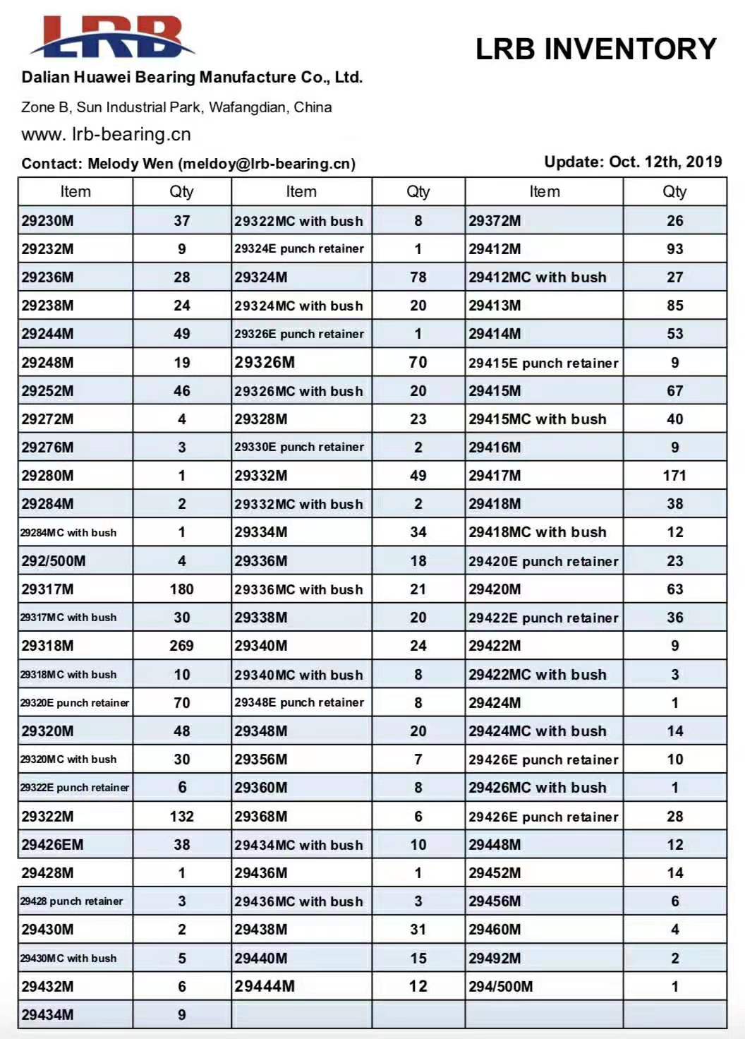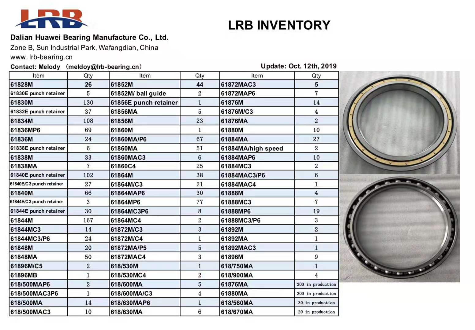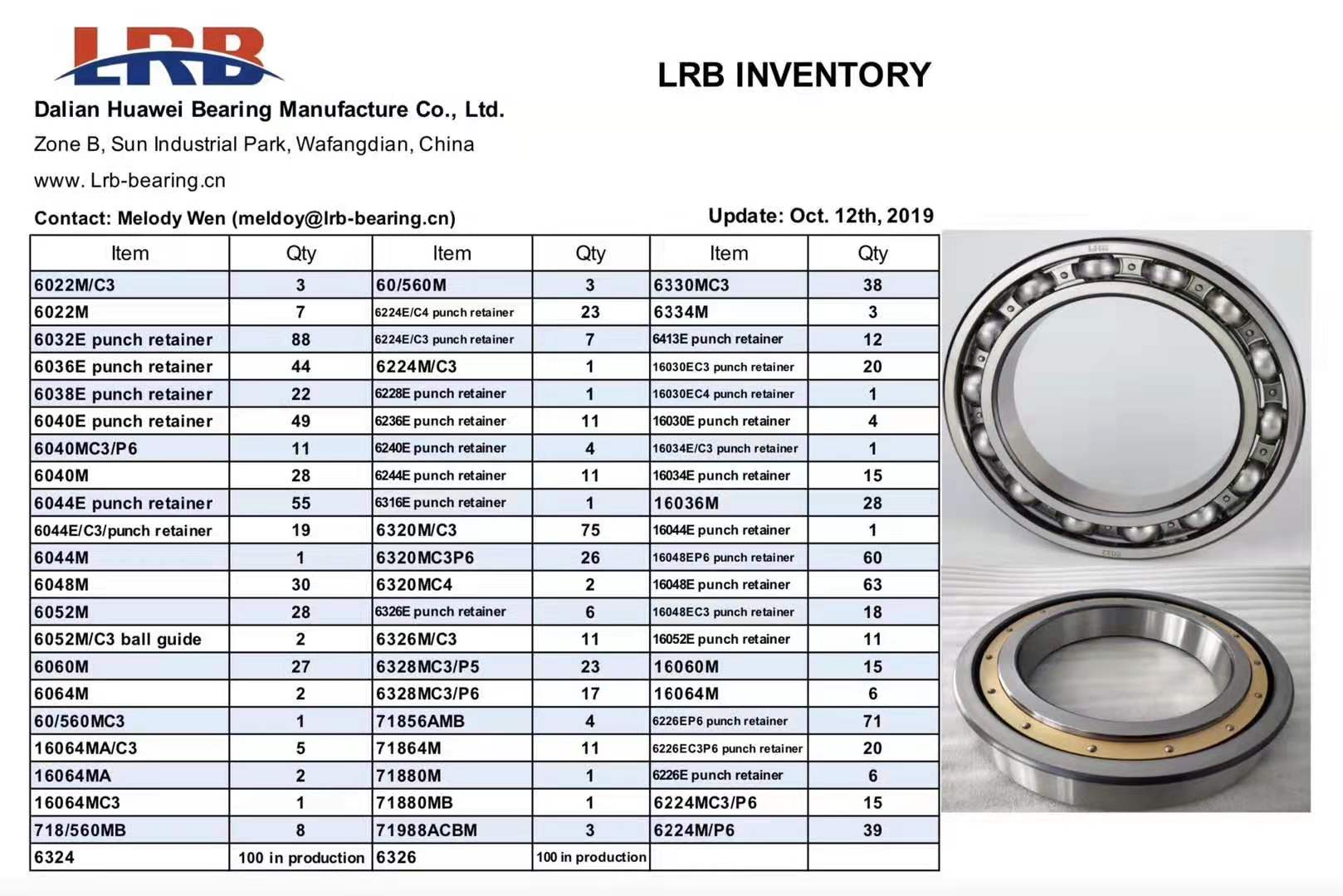 Here is the latest inventory of deep groove ball bearings and thrust roller bearings information from LRB, welcome your inquiry if interested: