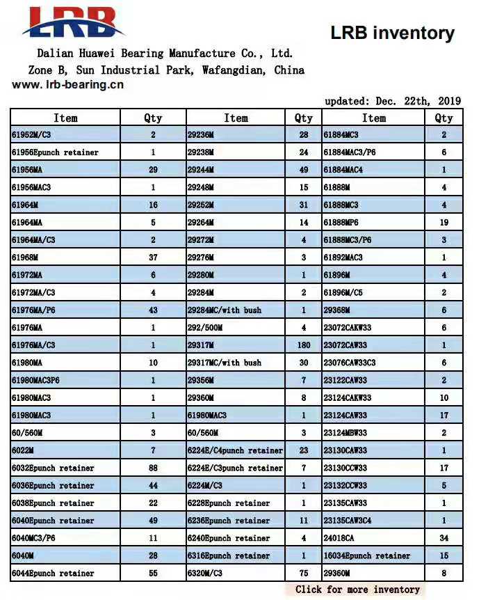 Dalian Huawei Bearing Manufacture Co., Ltd. built in 1998, located in Wafangdian, the bearing capital of China. We focus on manufacturing high-precision bearings since its inception, results in getting OEM orders from Europe and America. Thanks to their strict details request, we continually updated the machines and improved the manufacturing technique, at the same time, we sourced the best steel, cages, rollers, balls, etc., now, we use the same suppliers of SKF(China), heat treatment using imported equipment and foreign processes. We are proud of our P5 bearings are applied for leading transmission manufacturers in Germany, Italy, UK and America. Our bearings are mainly used in agriculture, mining, paper making, wood product, sugar processing industry, heavy equipment, motors, metal, oil and gas industry.